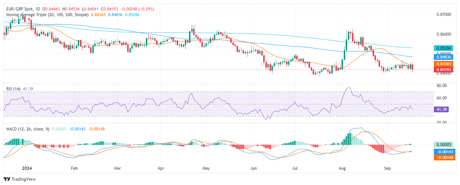 Based on the mixed technical outlook, the EUR/GBP's future direction is uncertain. A break above the immediate resistance level of 0.8460 could potentially target 0.8480 and 0.8500. Conversely, a break below 0.8420 could open up further downside potential toward 0.8400 and 0.8380.