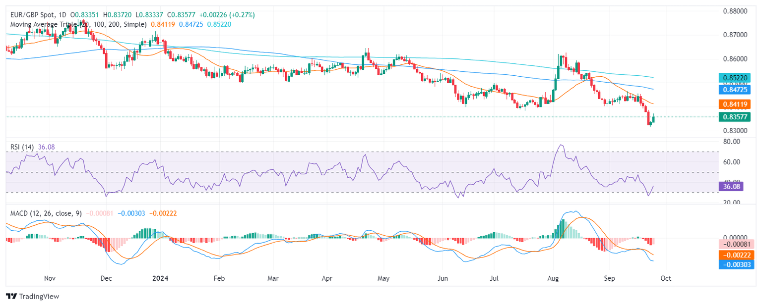 EUR/GBP Price Analysis: Pair stabilizes at 0.8350, technical outlook remains bearish