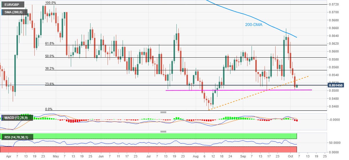 EUR/GBP seesaws around intraday high of 0.8517, extending the bounce off mid-September lows, tested the previous day, during the pre-European session on Wednesday.