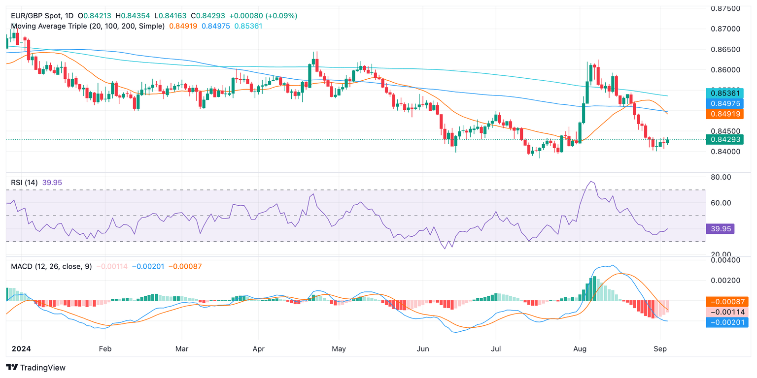 - EUR/GBP has extended its recovery from last week's lows, with technical indicators showing signs of improvement.