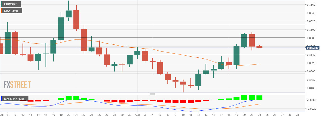 At the time of writing, EUR/GBP is trading at 0.8558, up 0.04% for the day.