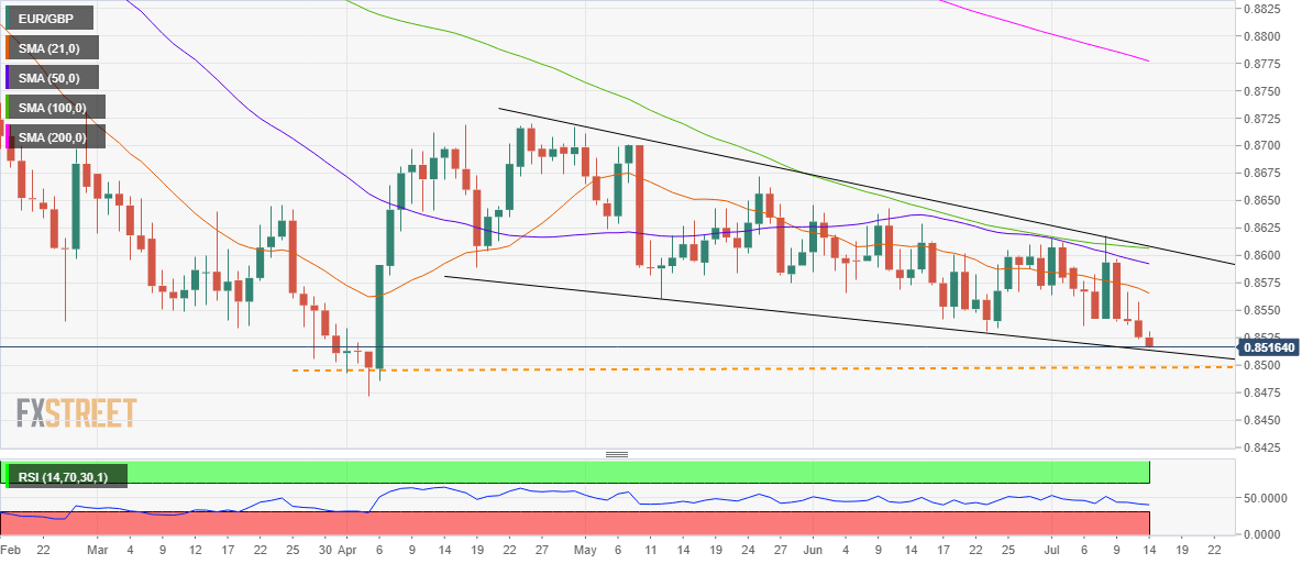 - EUR/GBP falls for the fourth straight day towards 0.8500.
