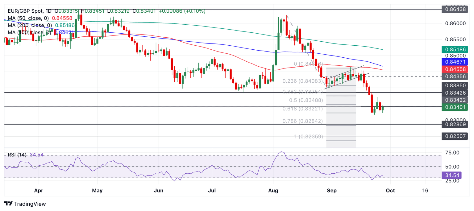 - EUR/GBP appears to have stalled after pulling back higher from the September 24 lows.