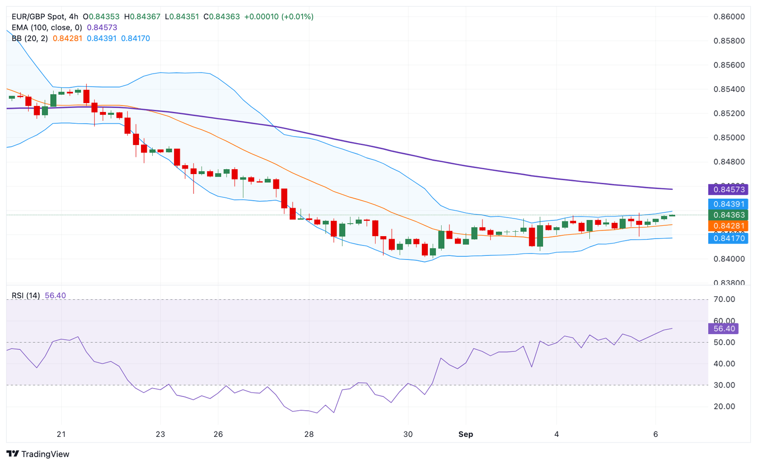 According to the 4-hour chart, the negative outlook of EUR/GBP remains intact as the cross holds below the key 100-period Exponential Moving Averages (EMA). However, the further upside cannot be ruled out as the Relative Strength Index (RSI) points higher above the midline near 56.0.