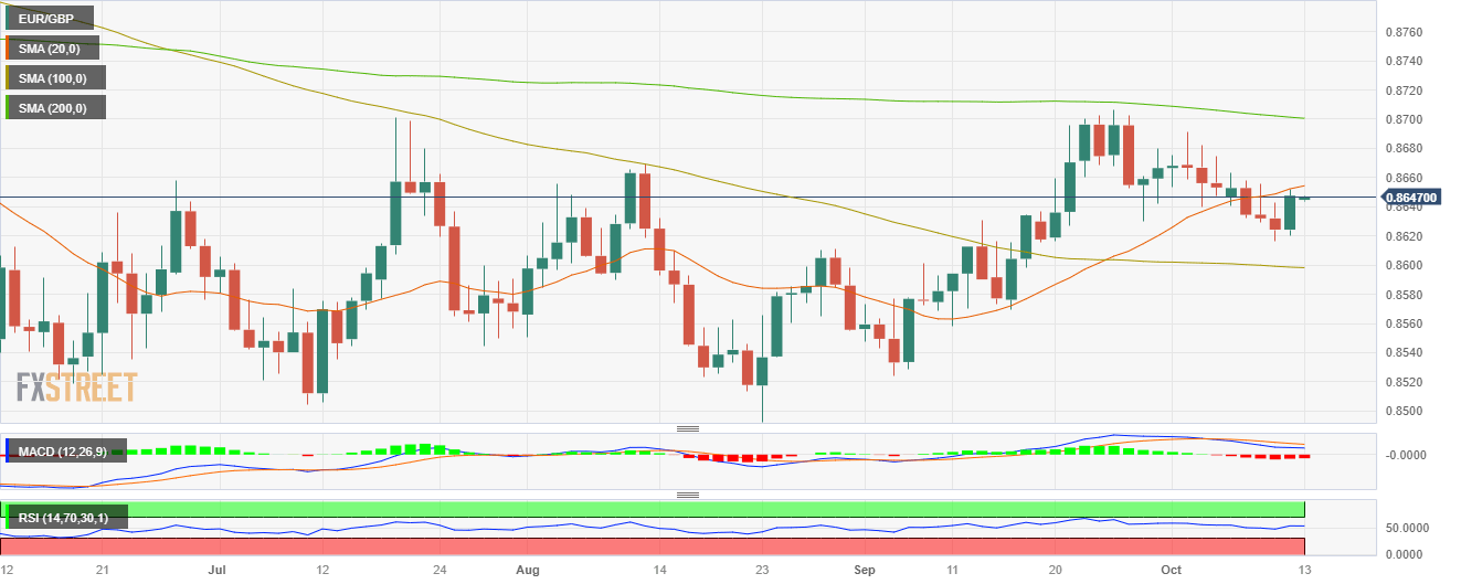 Resistance levels: 0.8655 (20-day SMA), 0.8680, 0.8700.