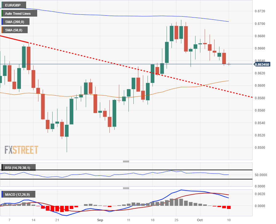 The EUR/GBP fell off recent consolidation to etch in a new October low near 0.8631, and the pair is pinned into the low end heading into the Tuesday trading session.