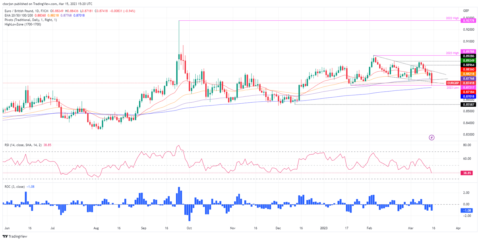 EUR/GBP stumbles below 0.8800 on traders expecting a less hawkish ECB
