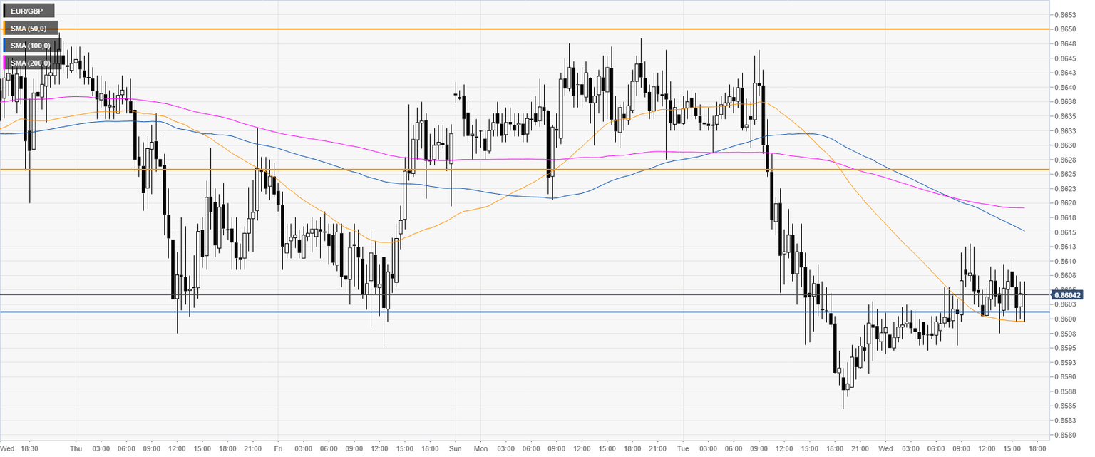 EUR/GBP is trading below near the 0.8600 figure and below its main SMAs, on the four-hour chart, suggesting a bearish bias in the medium term. A close below the 0.8575 support level on a daily closing basis should open the gates to more losses towards the 0.8500 round number on the way down, according to the Technical Confluences Indicator.