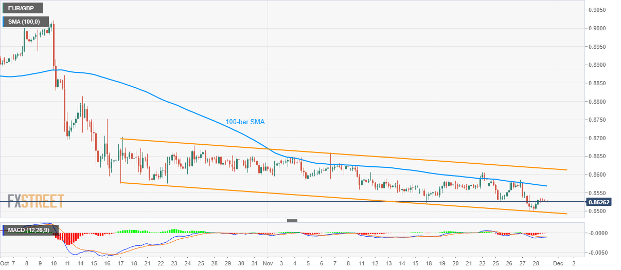 Meanwhile, an upside clearance of 0.8570 mark, comprising 100-bar SMA, will trigger fresh run-up to channel’s resistance, close to 0.8620 now. If at all prices manage to remain strong beyond 0.8620, bulls can target monthly high surrounding 0.8660 ahead of looking at the 0.8700 mark.