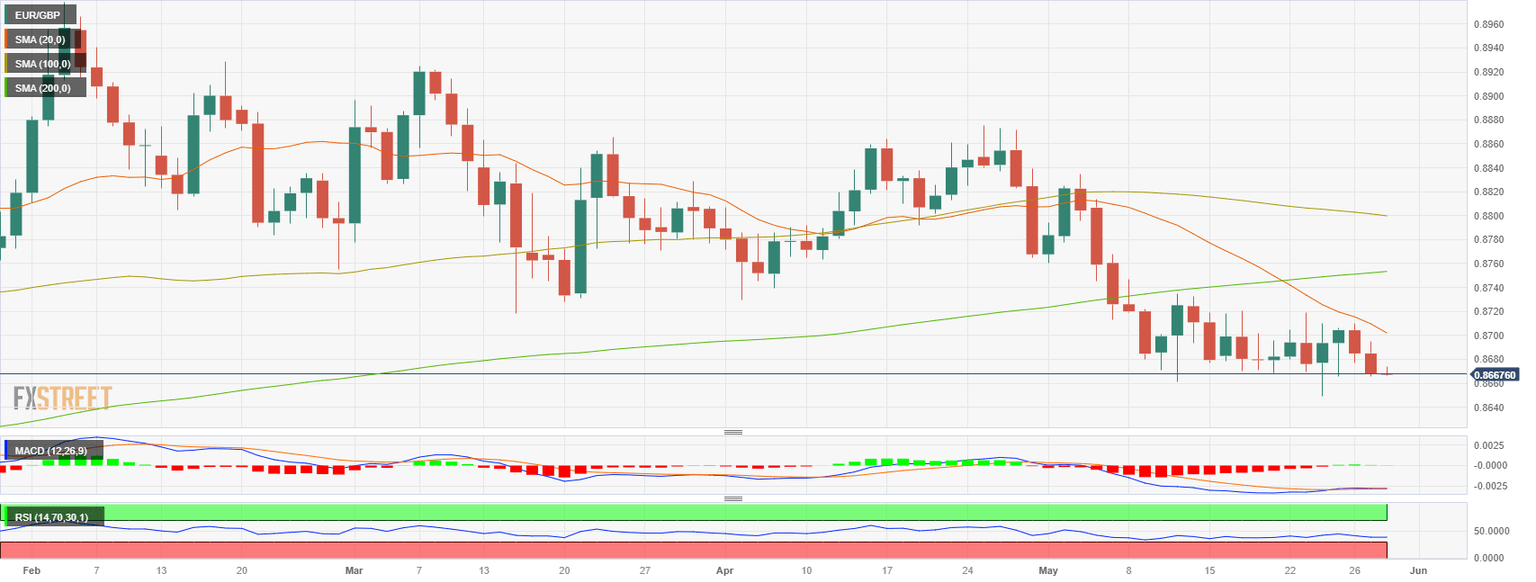 - The current trend remains undecided below the 0.8700 resistance, awaiting a clear direction pressured down by failing German Yields.