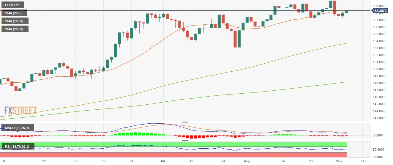 On Tuesday, the EUR/JPY cross slightly advanced to the 158.36 area over the 20-day Simple Moving Average (SMA), but the buyers struggle to make a significant upward movement.
