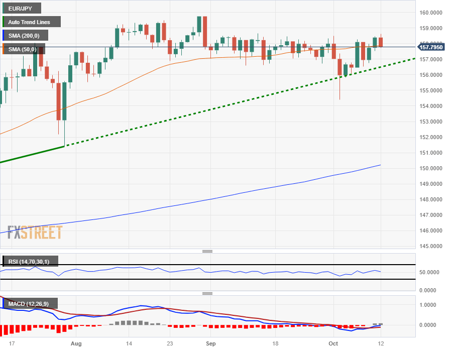 The EUR/JPY is down around 0.5% from the day's highs, trading down below the 158.00 handle as markets rotate out of risk assets following a data-beat for the US Consumer Price Index (CPI) print that showed inflation continues to shrink much slower than investors are hoping for.