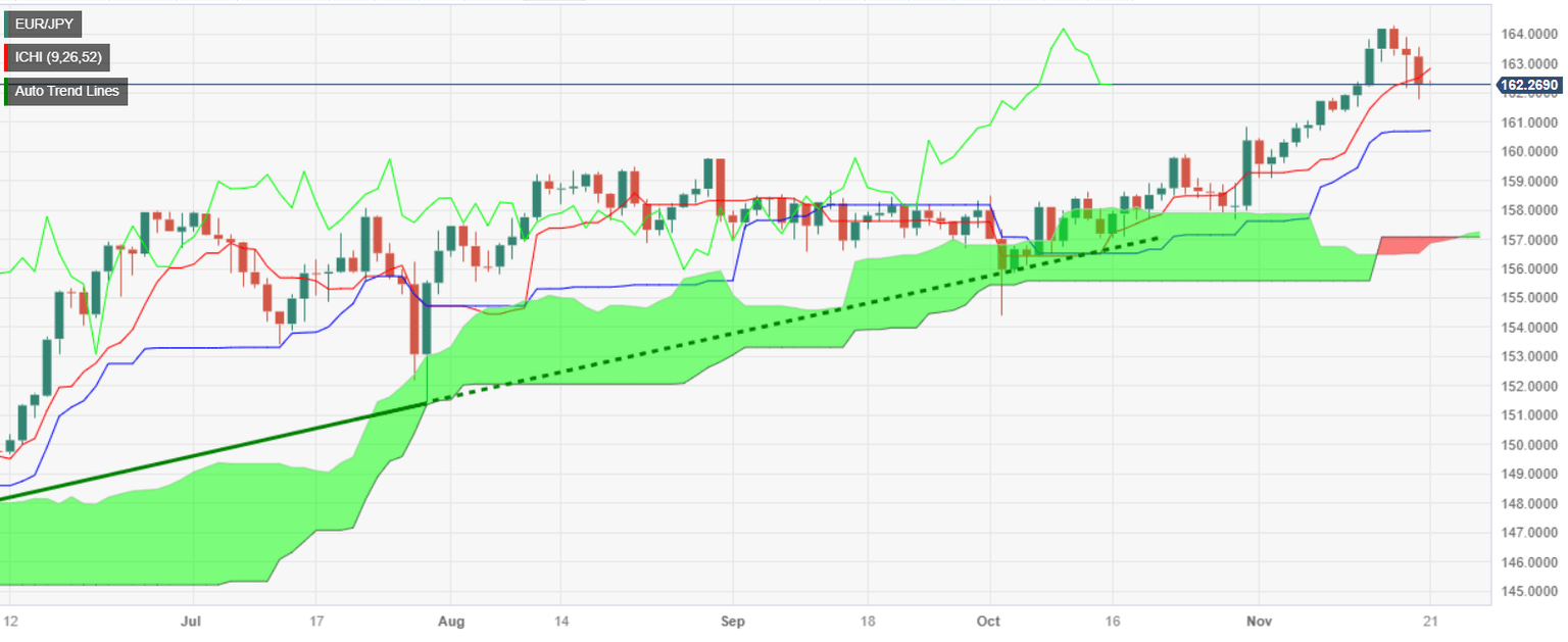 - Technical analysis reveals that EUR/JPY has slipped below the Tenkan-Sen at 162.82, indicating potential for further declines.