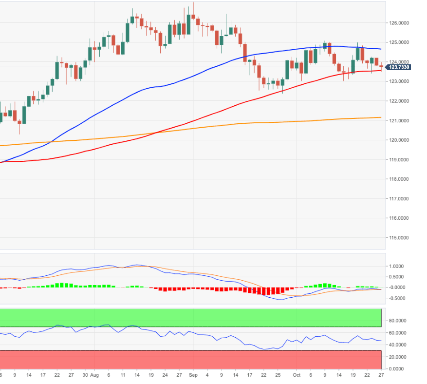 Further consolidations appears likely amidst a broad-based cautious stance in the global markets, although a loss of the lower bound of the range in the 123.50 zone could lead to another visit to the monthly lows in the 123.00 neighbourhood in the short-term horizon.