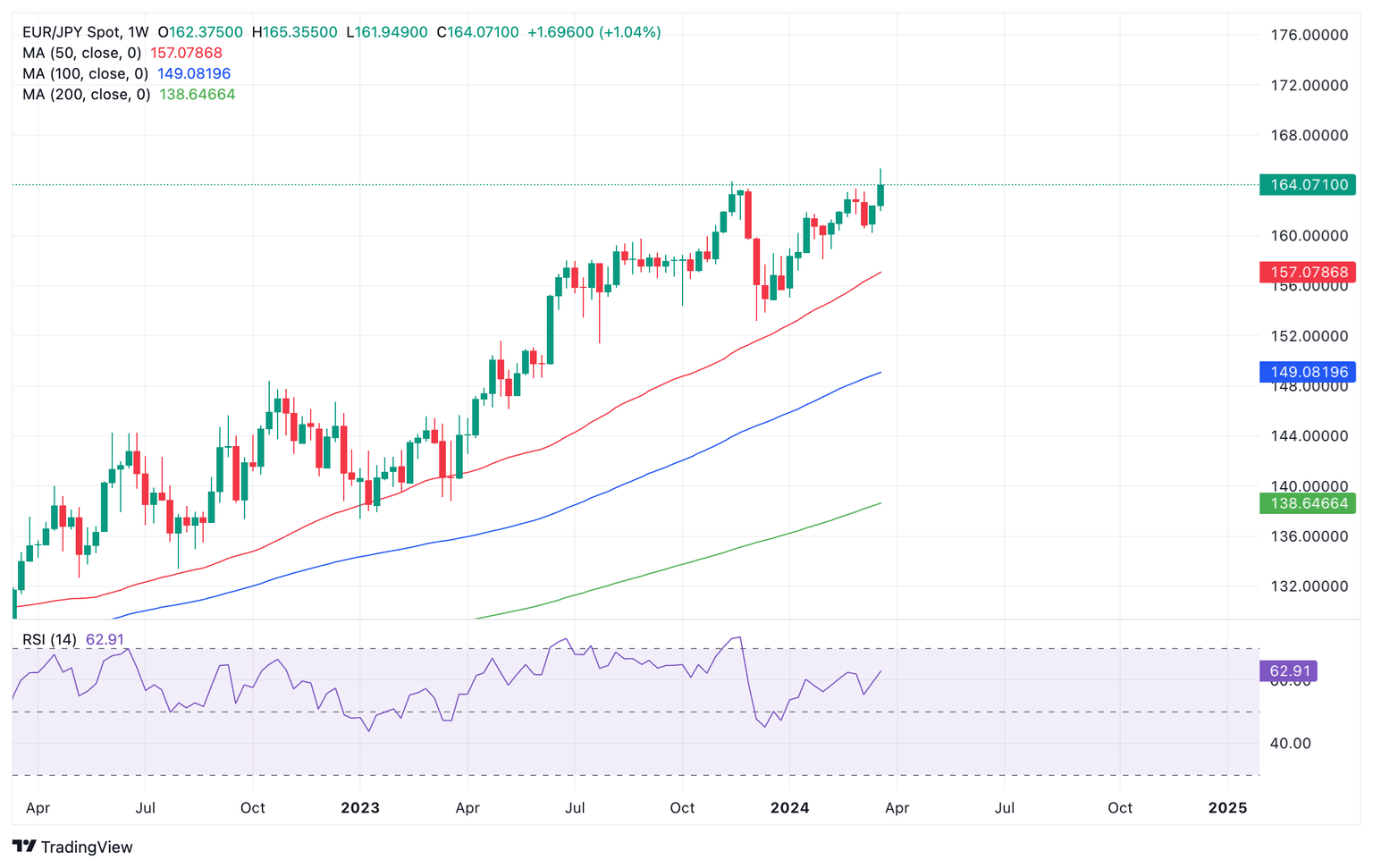 - EUR/JPY is showing acute bearish divergence on the weekly chart compared to 2023.