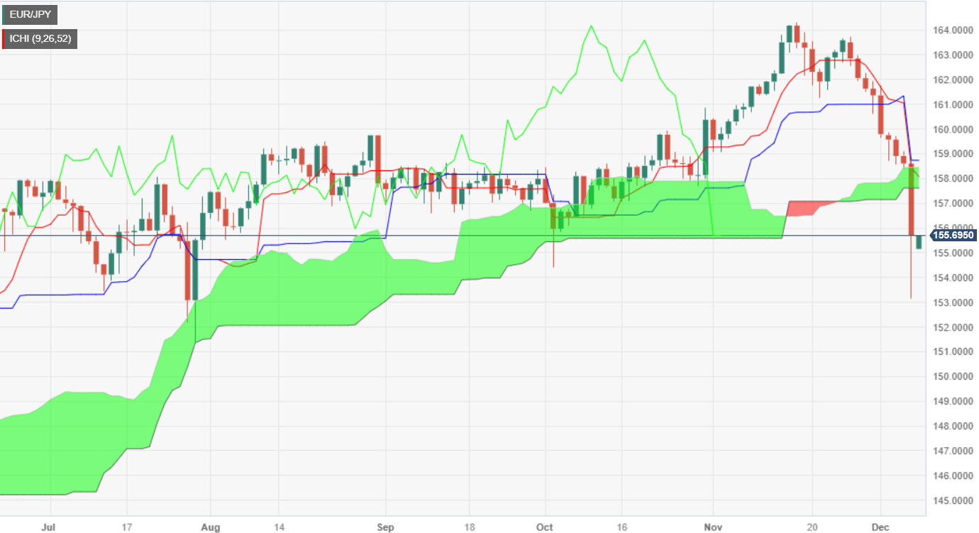 In addition to that, the Tenkan-Sen crossed below the Kijun-Sen, opening the door for further losses. Hence, the bearish bias remains intact, and the EUR/JPY first support would be the 155.00 figure. Further downside emerges if the pair drops below the October 3 swing low of 154.34, followed by the December 7 low of 153.11.