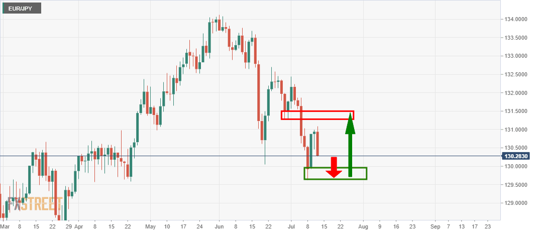 EUR/JPY bears are taking control but could well be on the verge of a significant test of the recent lows and prior supportstructure.