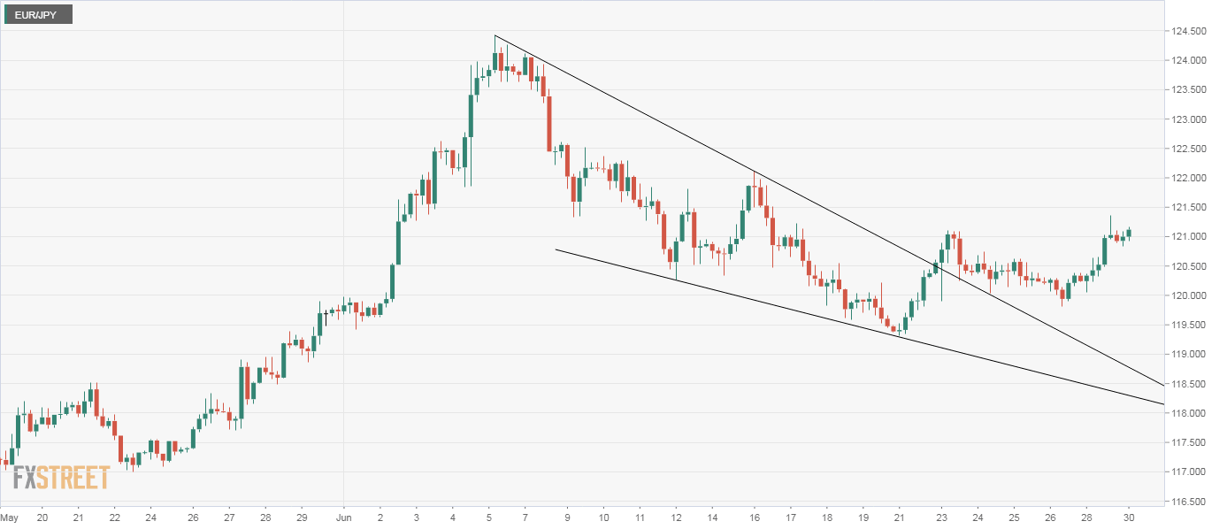 The pair looks set to cross above Monday's high of 121.36 and challenge resistance at 122.12 (June 16 high). The bullish bias would be invalidated if the support at 120.00 is breached.