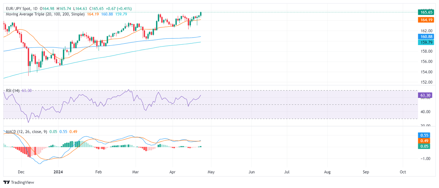 - The daily RSI signals growing buying momentum for the EUR/JPY.