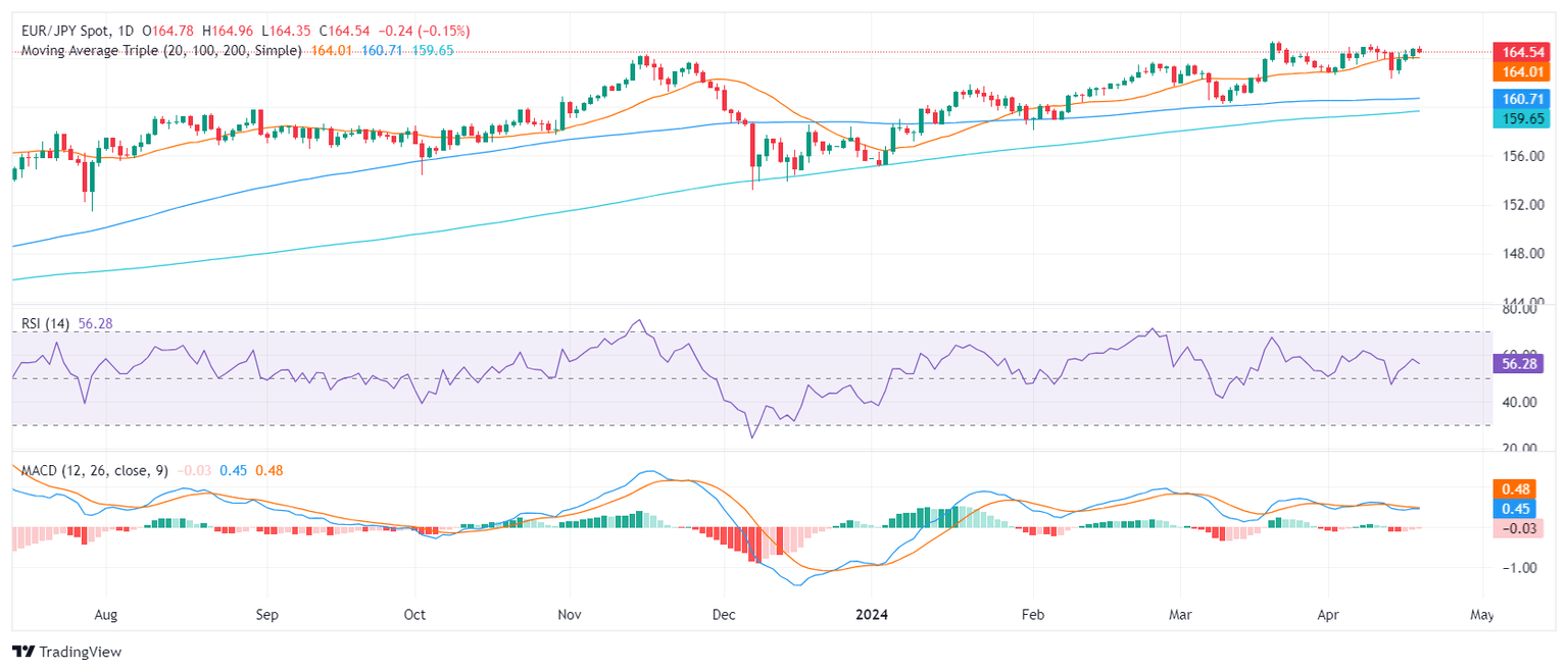- The RSI on the daily chart of EUR/JPY indicates sustained bullish momentum.