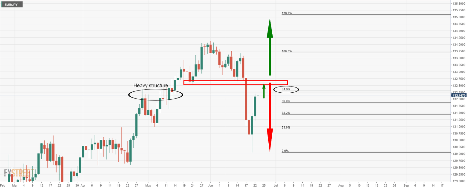 EUR/JPY bulls are taking charge and have moved on a prior area of the daily structure in late April and early May business.