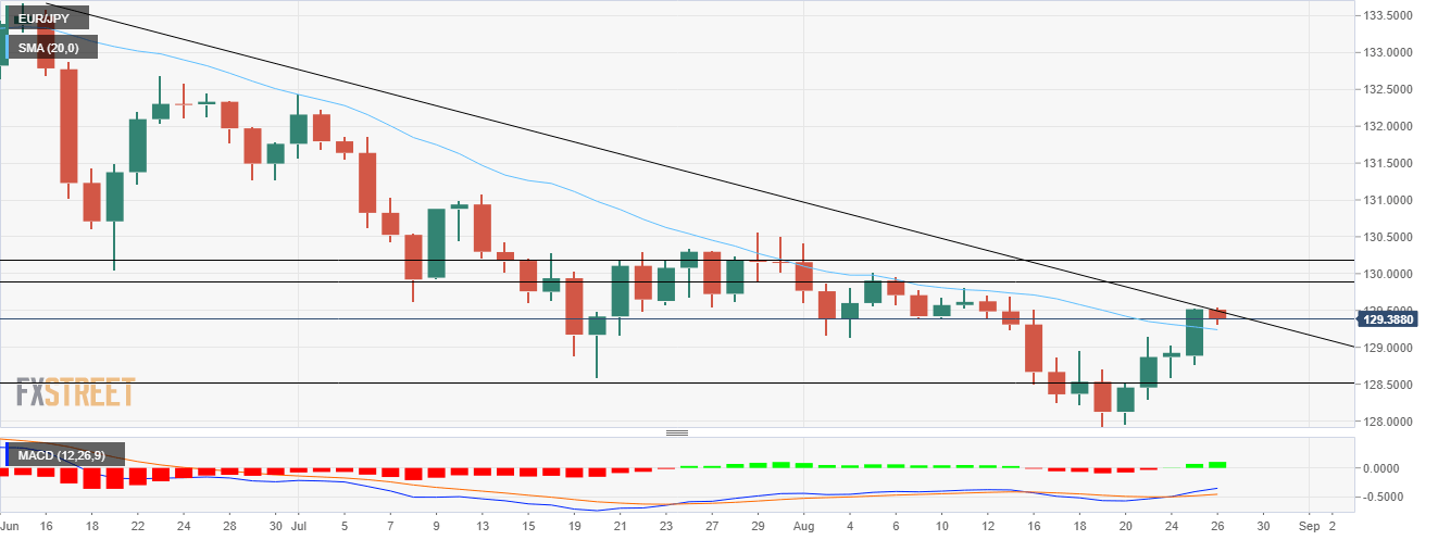 Next, the EUR/JPY bulls would meet the high of July 30 at 130.49.