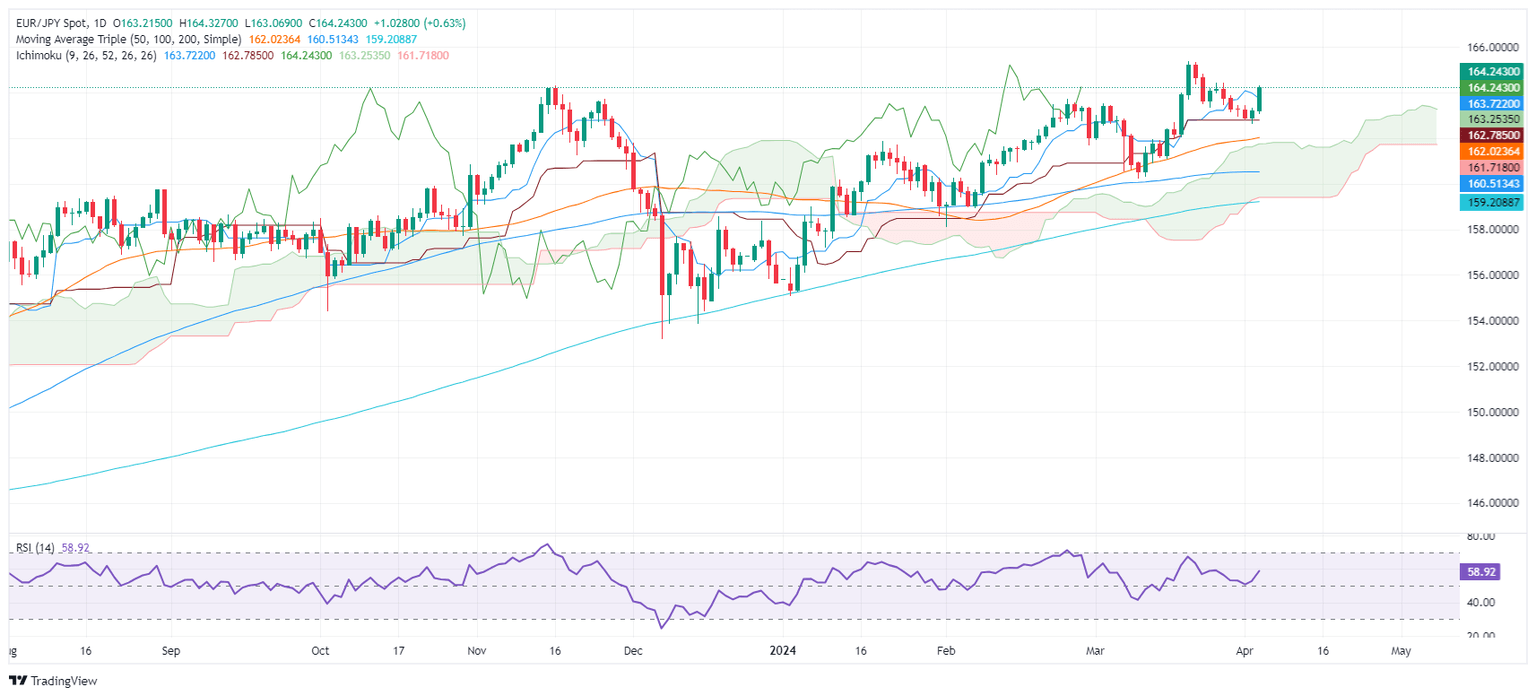 - EUR/JPY breaks above Tenkan-Sen, eyes 165.00 potential.
