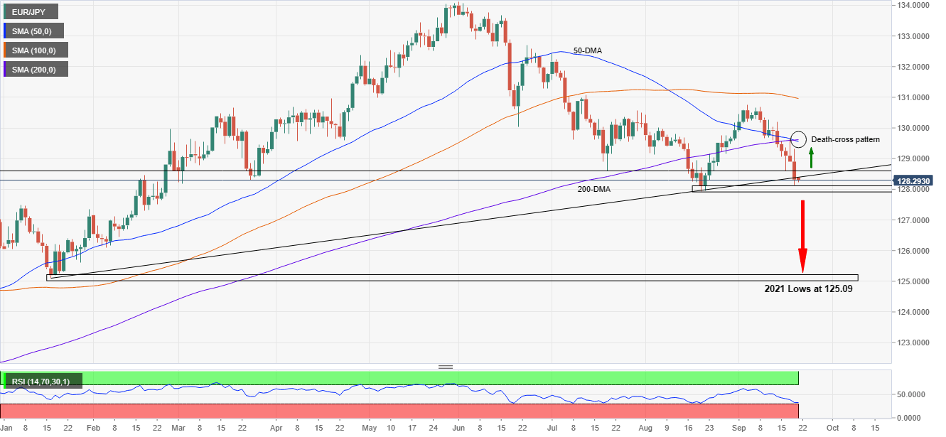 - EUR/JPY prints a fresh monthly low at 128.14.