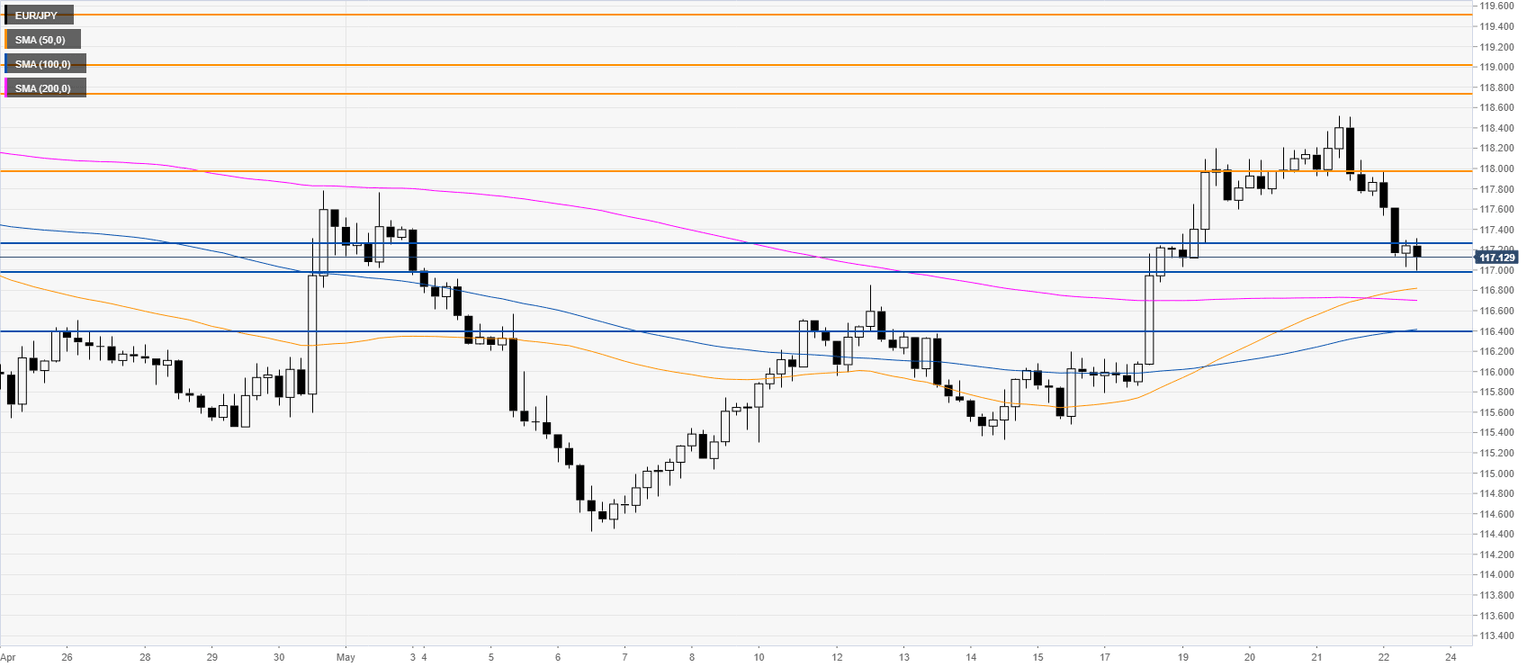 EUR/JPY Price Analysis: Euro easing from May’s highs, trades near 117.00 figure