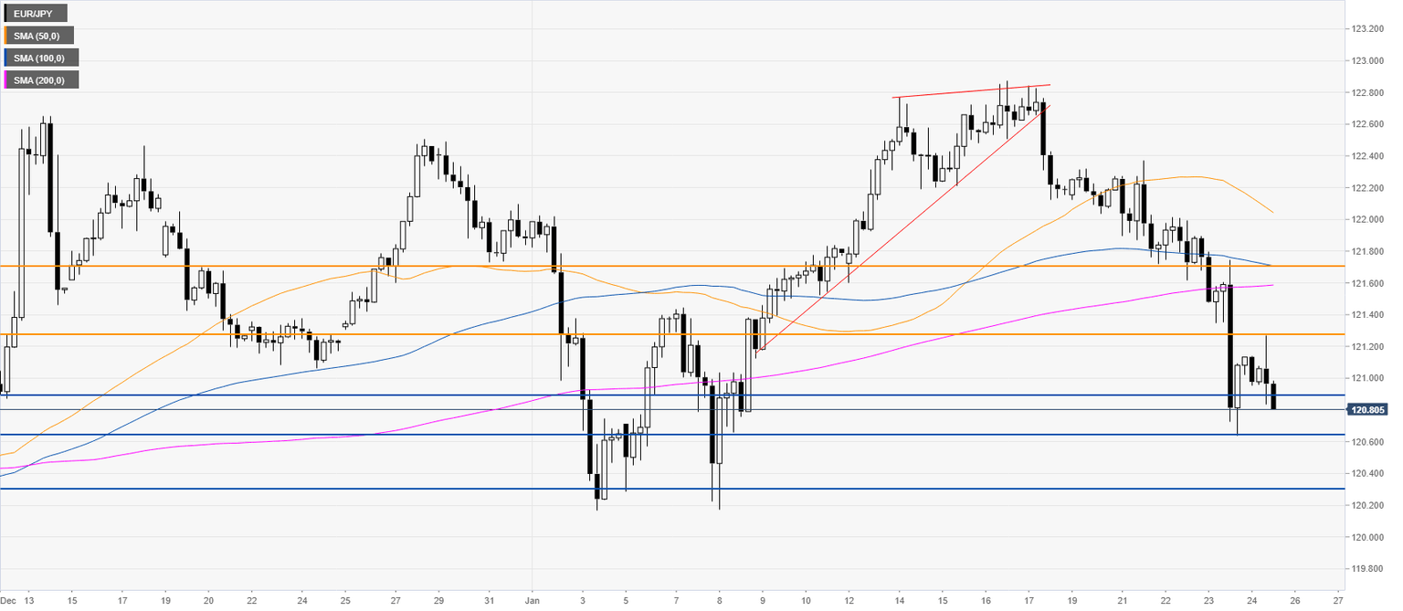 EUR/JPY Price Analysis: Euro eyeing January lows, trading sub-121.00 figure