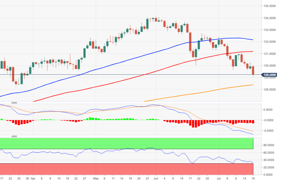 The loss of this area should expose further downside. That said, there is a minor support at 128.54 (Fibo level) ahead of the critical 200-day SMA, today at 128.33.