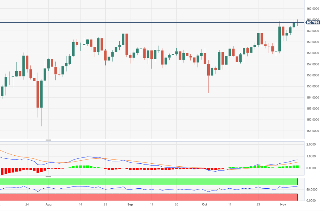 - EUR/JPY climbs to new 2023 peaks just past 161.00.