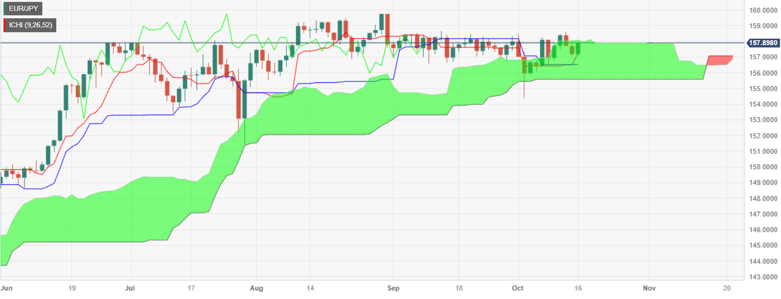 Conversely, if EUR/JPY sellers moved in, the first support would be the Tenkan-Sen line at 157.21. Once cleared, the next support would be the Senkou-Span B at 157.05, before challenging the 157.00 figure. If the cross-pair drops below those levels, the bottom of the Kumo would be up for grabs at 155.60/65, ahead of the October 3 swing low of 154.34.