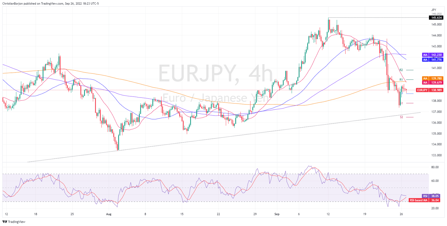 As the Asian Pacific session begins, the EUR/JPY barely drops 0.04%, courtesy of a risk-off impulse, due to increasing recession fears, as central banks continue to tighten monetary policy conditions, while the UK government unveiled a program of tax cuts, aimed to stimulate the already battered economy. At the time of writing, the EUR/JPY is trading at 138.99, below its opening price.