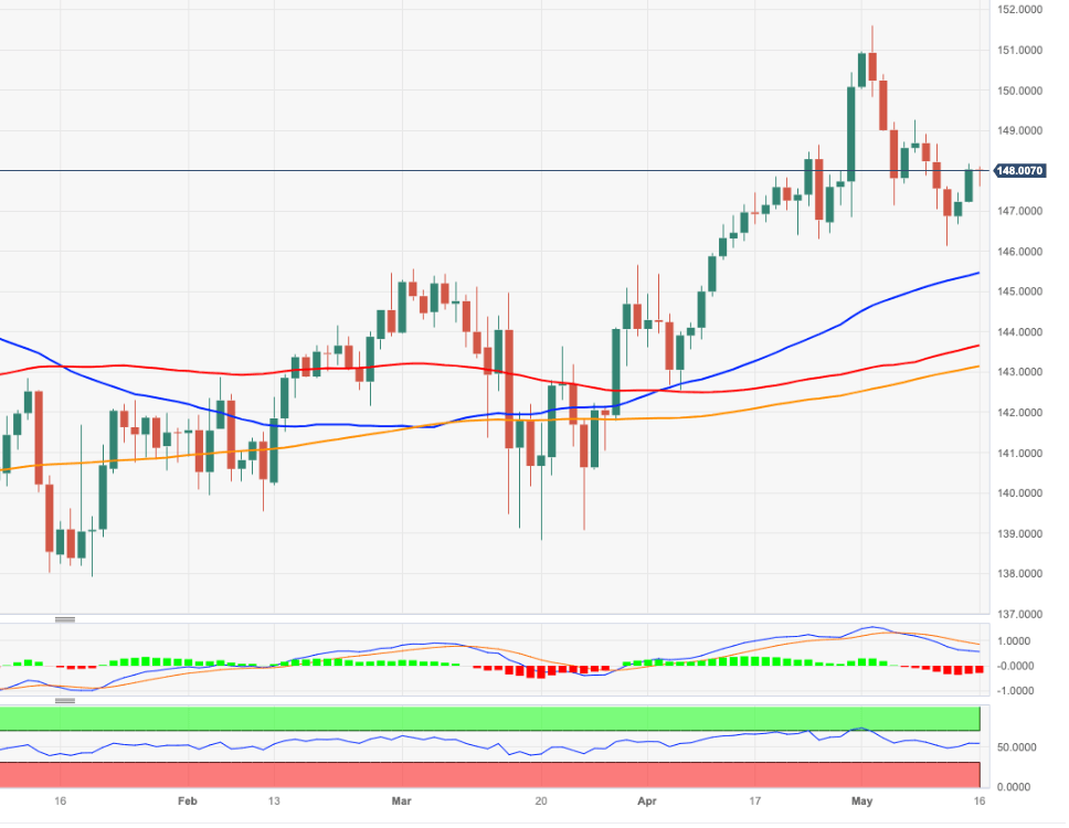 Once the 148.00 area is surpassed, the cross should be able to challenge the weekly peak at 149.26 (May 8). The surpass of this level could pave the way for a potential test of the YTD high at 151.61 (May 2).