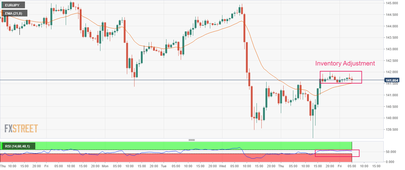 The 20-period Exponential Moving Average (EMA) at 141.50 is providing a cushion to the Euro bulls.