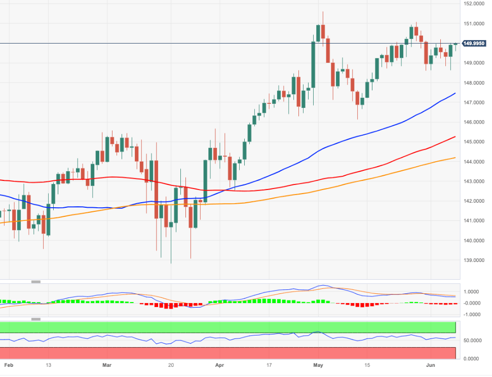 In case gains accelerate, there is an immediate hurdle at the so far monthly high at 150.19 (June 5). The surpass of this level could put the weekly top at 151.07 (May 29) back on the radar, while a convincing breakout of the latter exposes a probable move to the 2023 peak at 151.61 (May 2).