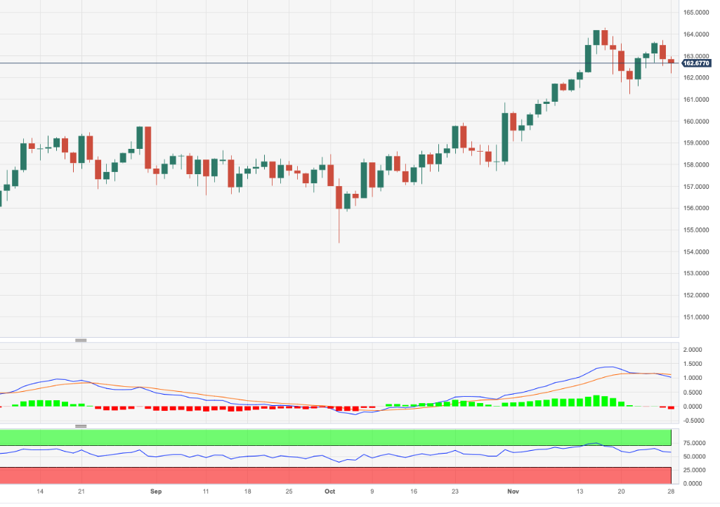 The continuation of the downward bias carries the potential to drag the cross to the weekly low of 161.20/25 band (November 21) prior to the provisional 55-day SMA, today at 159.40.