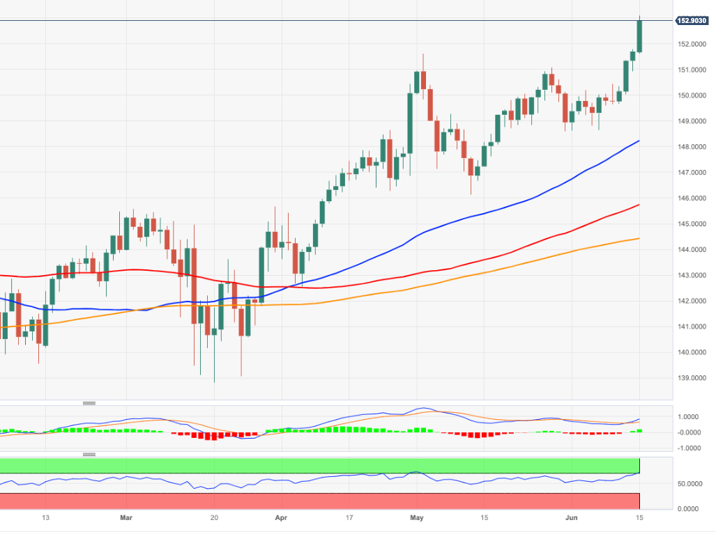 EUR/JPY climbs markedly to new 2023 peaks just above the 153.00 hurdle on Thursday.
