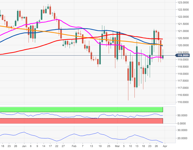 The cross is prolonging the recent breakdown of the key 200-day SMA in the 120.00 region. The continuation of the selling bias should see the cross testing the mid-118.00s in the near term, where emerge the February lows.