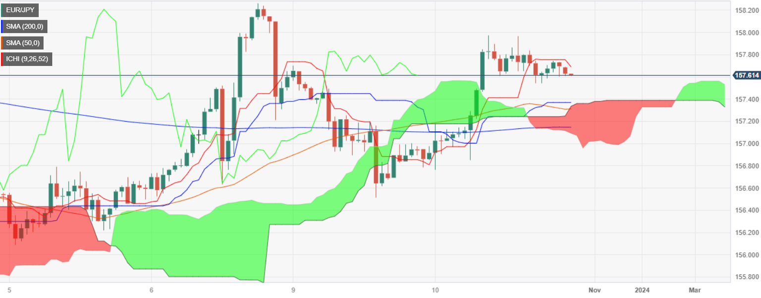 - EUR/JPY hovers at 157.66, seeking direction amidst a prevailing consolidation phase.