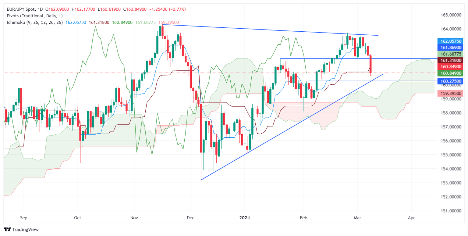 - Technical analysis indicates potential for further pullback if pair closes below the 161.31 Kijun-Sen level.