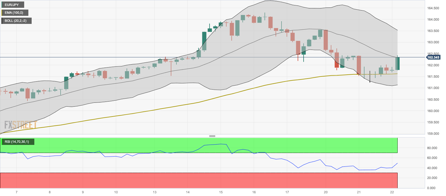 - EUR/JPY gains traction around 162.35, gaining 0.26% on the day.