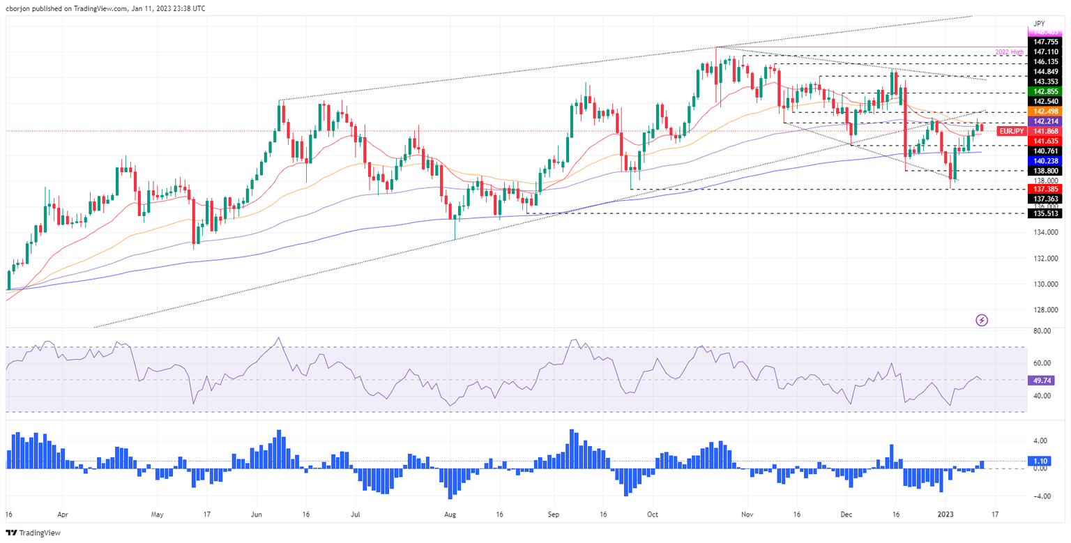 As an alternative scenario, if the EUR/JPY resumes its uptrend, key resistance levels are the 100-day EMA at 142.21, followed by the 50-day EMA at 142.50, and then the 143.00 mark.