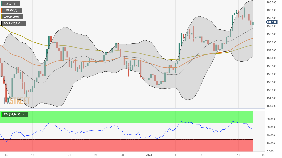 On the downside, the initial support level for EUR/JPY is seen near a high of January 4 at 158.60. The additional downside filter to watch is the 50-EMA at 158.25, followed by the 100-EMA at 157.82. A breach of this level will see a drop to the lower limit of the Bollinger Band at 157.09.