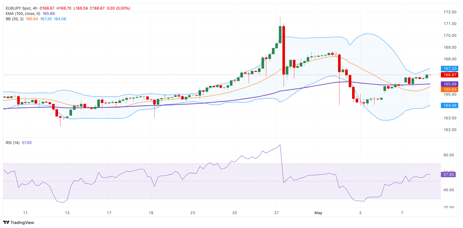 The EUR/JPY cross trades on a positive note for three straight days around 166.65 on Wednesday during the early European session. The Bank of Japan (BoJ) Governor Kazuo Ueda said on Wednesday that the Japanese central bank may take monetary policy action if yen moves have a big impact on inflation. Meanwhile, Japanese Finance Minister Shunichi Suzuki stated that rapid foreign exchange movements are undesirable. Suzuki declined to comment on whether the US has agreed on Japan's FX intervention.