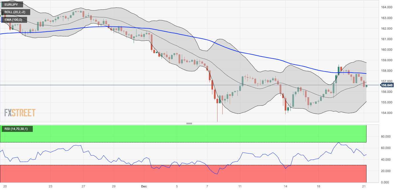 On the flip side, the initial support level for EUR/JPY is located near a low of December 19 at 155.38. The key contention level will emerge near the lower limit of the Bollinger Band and a psychological level at the 155.00–155.05 zone. A breach of this level will see a drop to a low of December 15 at 154.40. The additional downside filter to watch is a low of December 14 at 153.85.