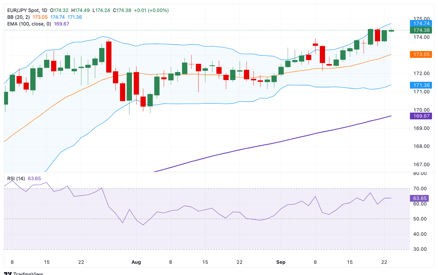 The EUR/JPY cross holds steady near 174.40 during the early European session on Tuesday. Political uncertainty in Japan ahead of the Liberal Democratic Party leadership election scheduled for October 4 could weigh on the Japanese Yen (JPY) against the Euro (EUR). The preliminary reading of HCOB Purchasing Managers’ Index (PMI) reports for September from the Eurozone and Germany will be in the spotlight later on Tuesday.