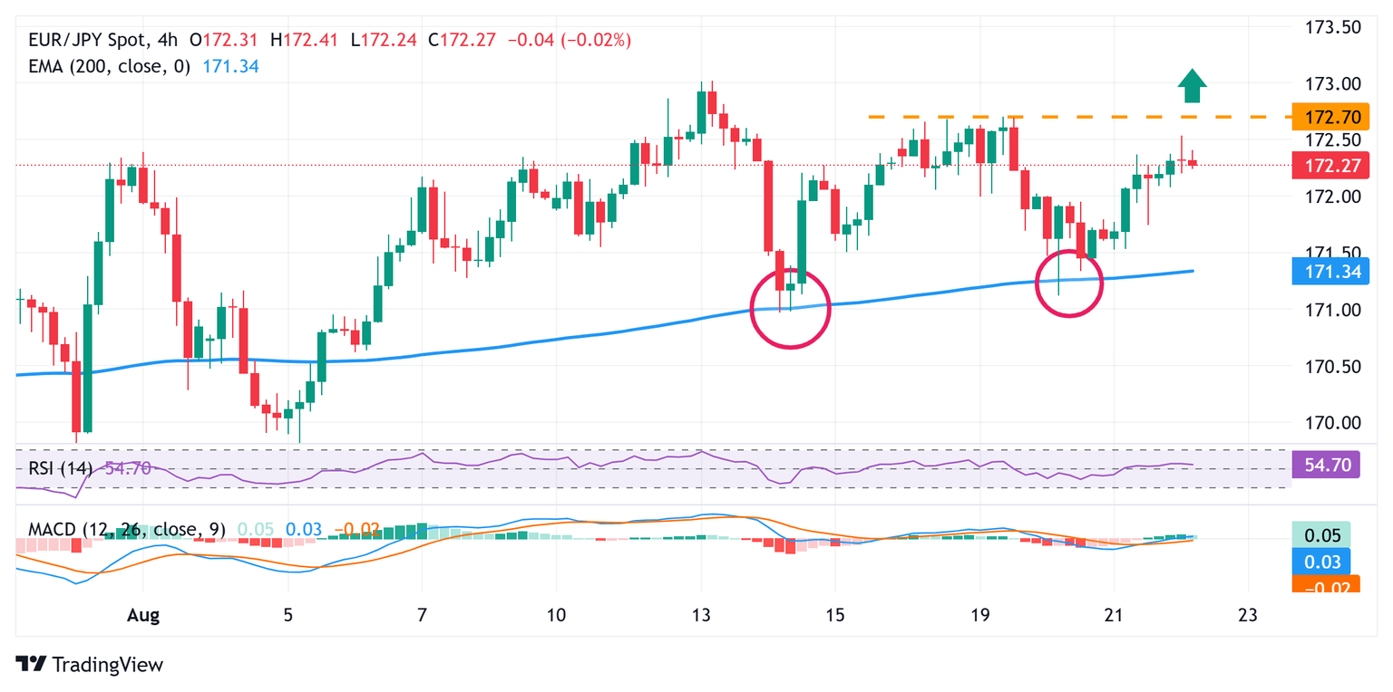 EUR/JPY Price Forecast: Holds above 172.00; bullish technical setup backs positive outlook