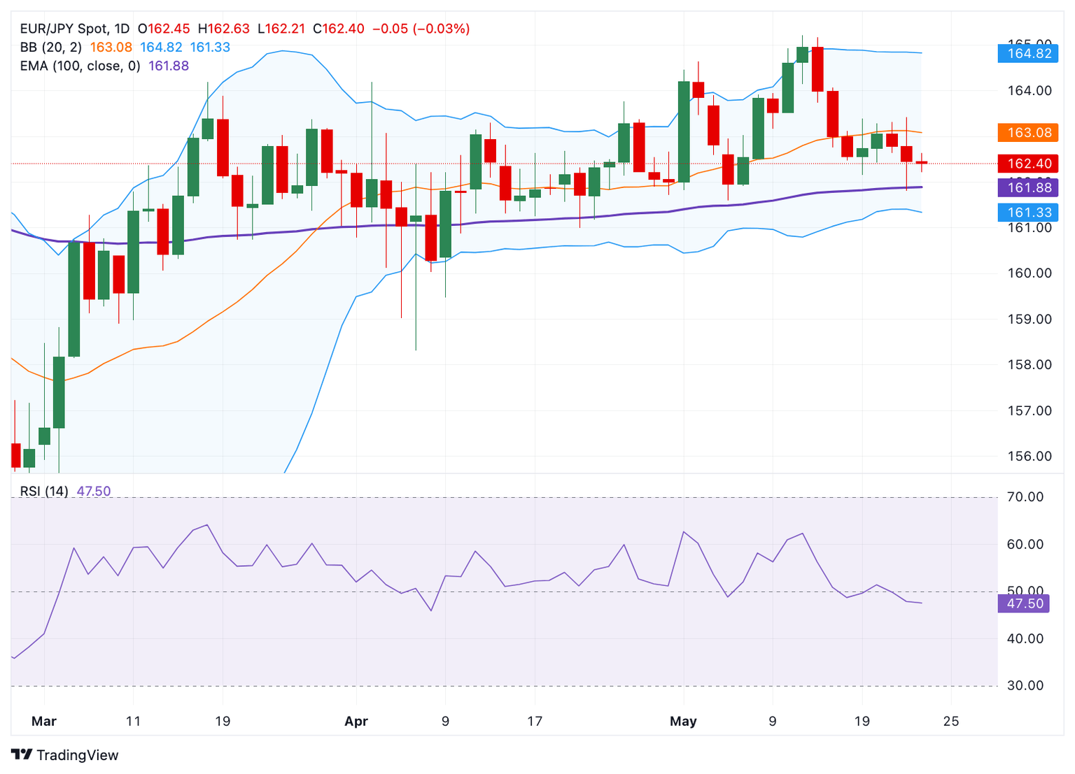 The first downside target for the cross emerges at 161.88, the 100-day EMA. Extended losses could see a drop to 161.33, the lower limit of the Bollinger Band. A breach of this level could pave the way to the key contention level at the 160.00 psychological mark.